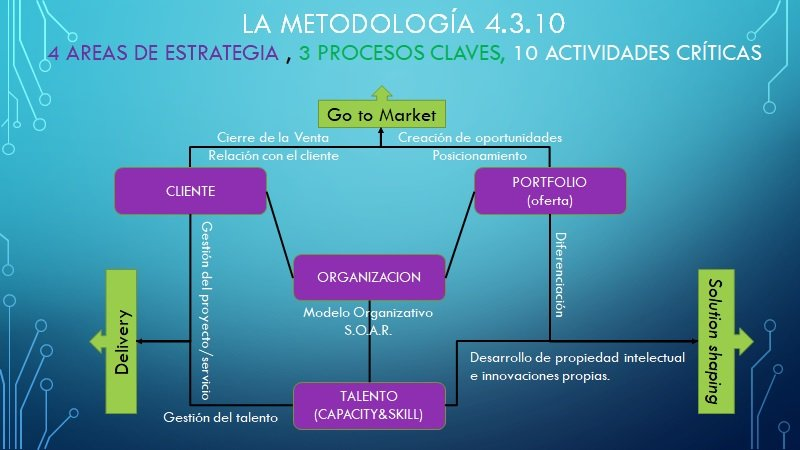 - Creador de 4.3.10, una metodología para hacer crecer empresas de servicios y desarrollar un modelo de venta consultivo. Implementada en 3 diferentes empresas, logrando crecimientos anuales del 48%, 71% y 89%.